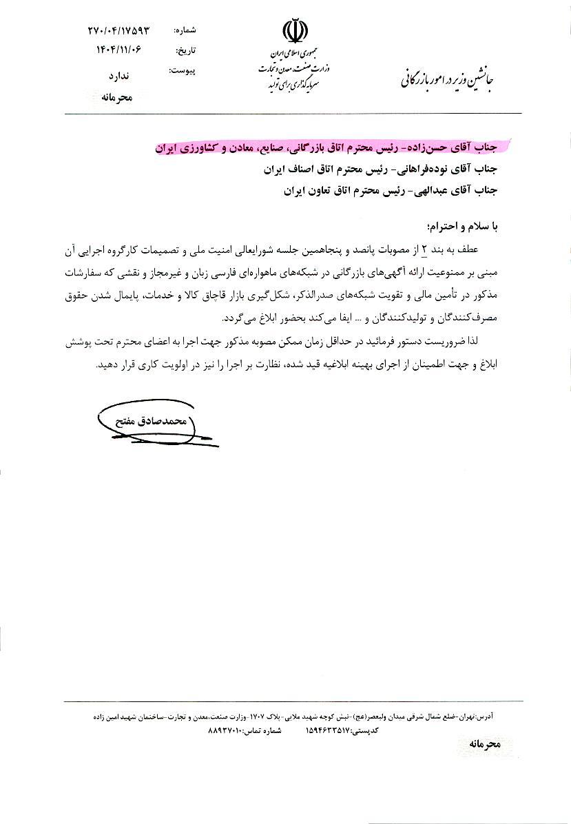 ابلاغ نامه وزارت صمت درخصوص ممنوعیت تبلیغات در ماهواری فارسی زبان